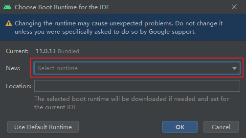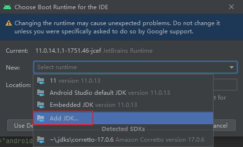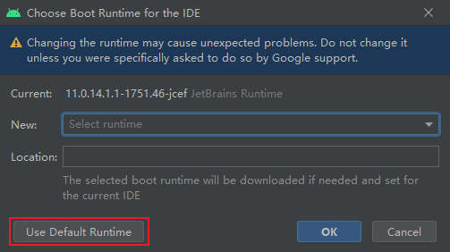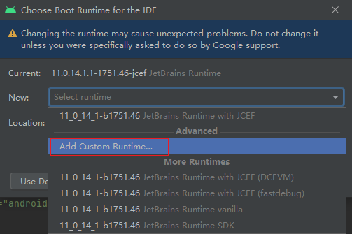 Select a Runtime that includes JCEF,click OK to download automatically