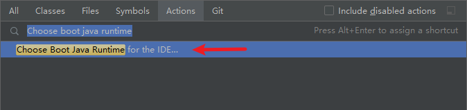 Open the menu Help > Find Action,Search Choose Boot Java Runtime for the IDE